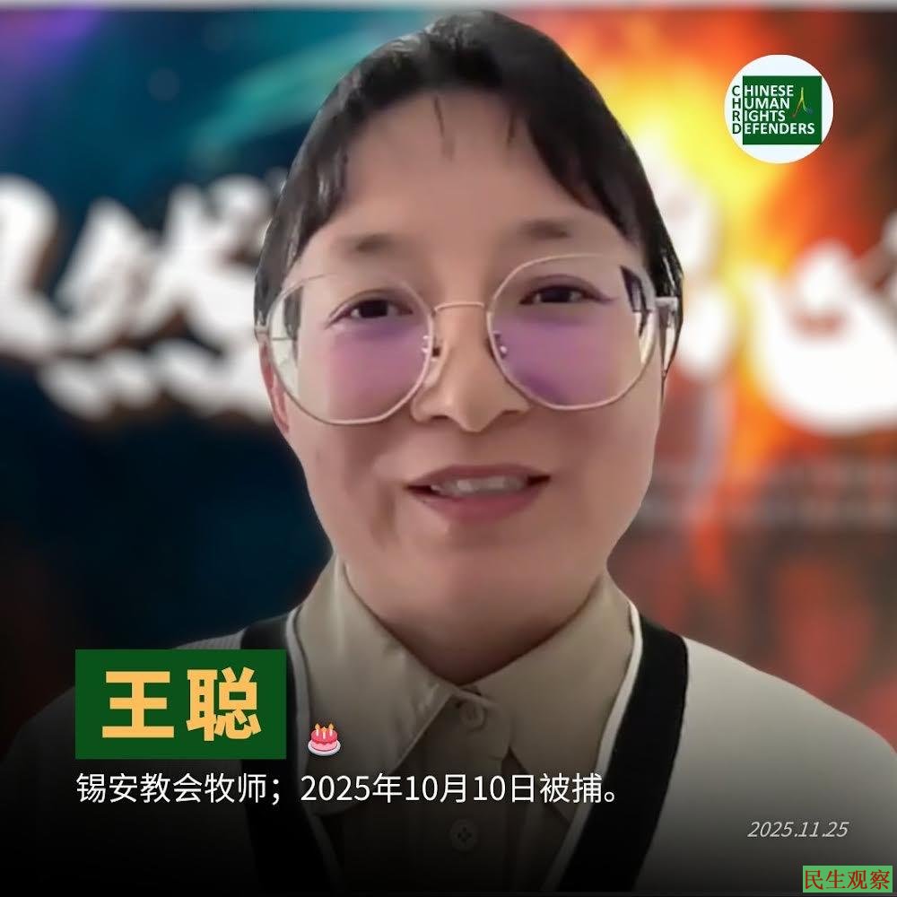 【民生观察2025年12月29日消息】自2025年10月9日开始,锡安教会牧者同工陆续遭到大范围抓捕,截止目前有18位被以涉嫌非法利用信息网络罪批捕,他们分别被羁押在北海市第一看守所和第二看守所。近日,王聪牧师家人会见后得知,其因书写信仰感动遭到惩罚,且家人邮寄给王聪的书籍和照片她都没有收到。