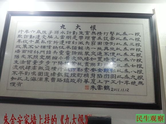 朱金安老先生获得无罪释放后,每天都有很多的失地农民前往看望、慰问、照顾,以各种方式表达对朱老先生的敬意。为失地农民争取利益被拘留,被拘留时是一个健康人,释放时变成一个瘫痪人,大家为朱老先生感到难过,但更多的是气愤,谴责当局太没人性与践踏人权的不法行为!