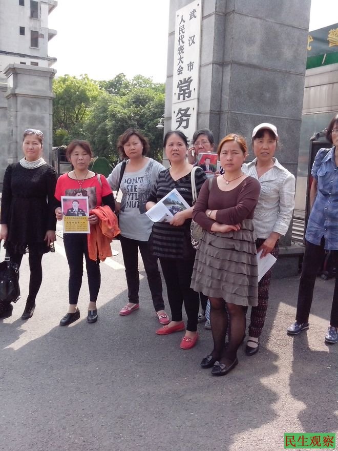 民生观察工作室2014-5-8消息:听说中央巡视组大员们今天到了武汉市人大,今天上午八点,武汉三镇五、六十访民早早就来到了武汉市人大,希望能见到巡视组的这些官员们陈情申冤,但是一直等到下五点多都没见个领导出来见访民。