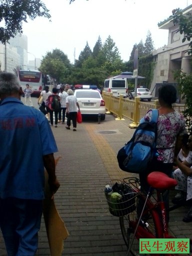 民生观察工作室2014-7-17消息:今天上午,在中纪委门前西侧靠左排排坐了40多个各地来京接访人员,路边接访人员停放的车辆和拉访民的公交车像条长龙,排出去了好远。访民则在西侧靠右的路边坐了一排,等着往久敬庄送。警察和特保唯恐这些“不老实”的访民闹出点事来,戒备森严。