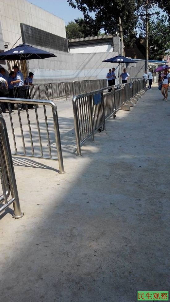 赵作媛说,有三堆警察分别把守最高法的大门、及门的东、西两侧,把门的警察只用手和眼(没有任何仪器)查看身份证只放淄博女访民进去,赵作媛和其他三人被拦在门外,并让赵作媛到门西侧那堆警察那去手写登记!