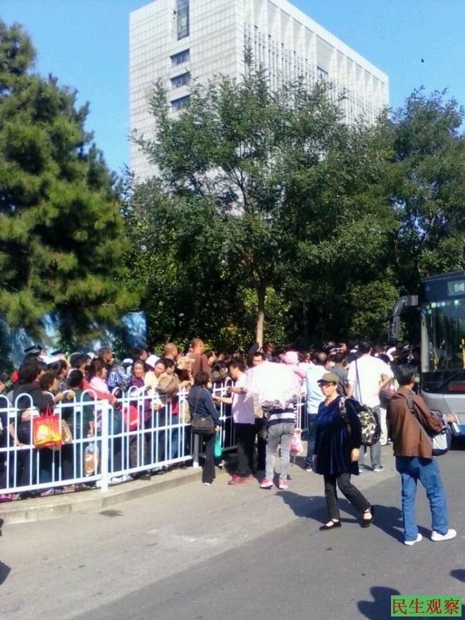 民生观察网2014-9-29消息:今天下午在中纪委的访民有200多人,接访人员也有数人。不时有访民被接访人员强制带走。两个女访民被接访人从人群里给抱了出来,引来路人拍照,旁边一接访人赶紧过来制止拍照并和抱着女访民的人打招呼,他才把访民放开。