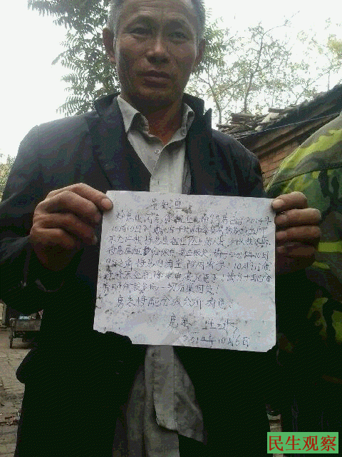 可怜的访民在北京没有地方住,重庆市长寿区红胡镇郑忠成近日也被房东彻底赶出大门,他也有这张告知书。