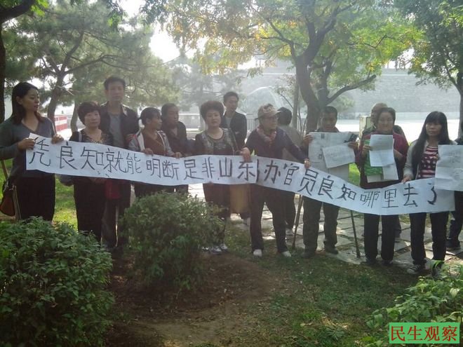 青岛在京访民四中全会前问官员良知哪里去了