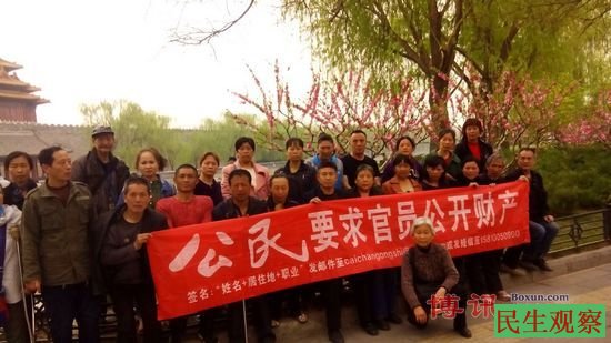 遭抓捕关押一事,今日本网获悉,西城分局以孙金秀4月15日参与悼念胡耀邦并到北京故宫北门张打“公民要求官员公开财产”,“要求严惩违法劫访,誓死捍卫人权”的横幅拍照,被以涉嫌寻衅滋事罪刑拘。