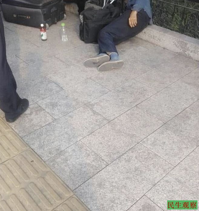 民生观察工作室2015/9/17消息:今天早上,在北京新华门往西长安街百米处的一岗亭下,黑龙江木兰县访民杨世和(音)喝农药自杀。