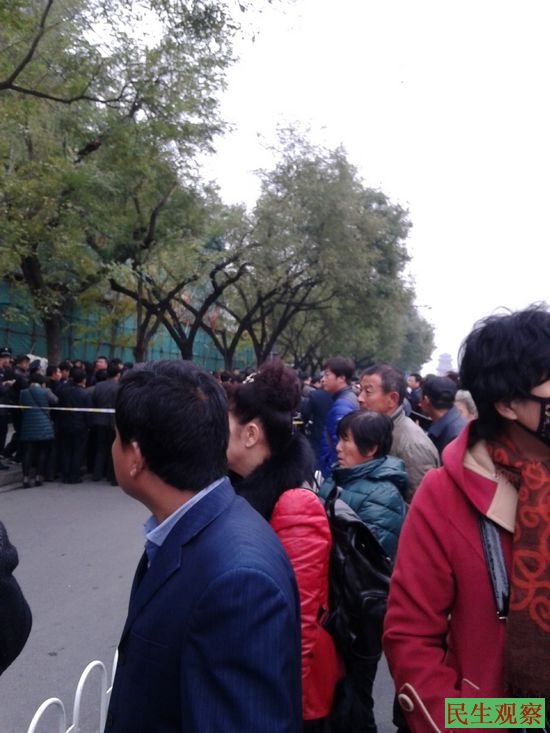 民生观察工作室2015/10/26消息:今天国家信访局门前聚集了约2000访民,保安用警戒线把访民控制在一定范围内,警戒线外的访民有的唱着上访歌,也有访民摆地状诉冤。