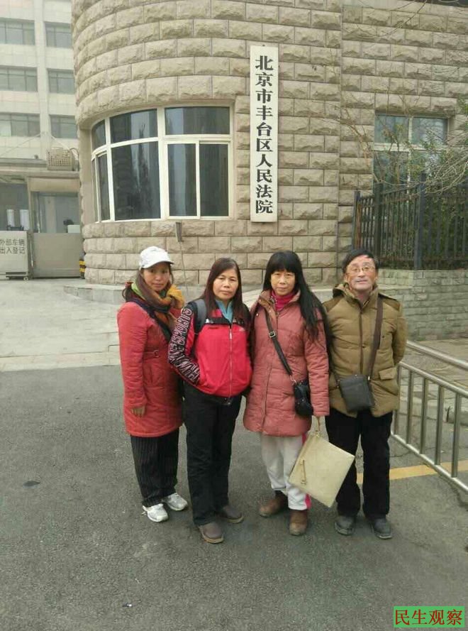 民生观察工作室2015/12/1消息:昨天下午2点,在京访民侯家贵诉北京丰台区公安分局行政不作为一案开庭。该案引起了在京其它访民的关注,姜家文、黎容好、郭志惠、李树南、郝威、吴梅、卢天南、闫春凤、沈福田、王娅林、刘彩霞、张秀华等访民用了三个多小时到达丰台法院要求旁听,可法官胡亮突然宣布不开庭了,但却把原告侯家贵留下了。
