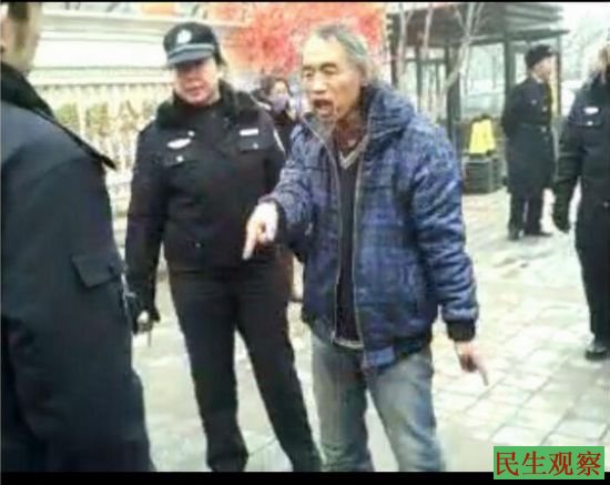 他为此多次到东城区检察院控告拘留所警察和法院的违法行为,检察院不管。12月11日上午他再次到检察院去,检察院的人不让他进门,他一气之下踹检察院的牌子,检察院的人报警,他也报警要求警察查一查检察院上班不办公的原因,被天坛派出所警察强行带到派出所。