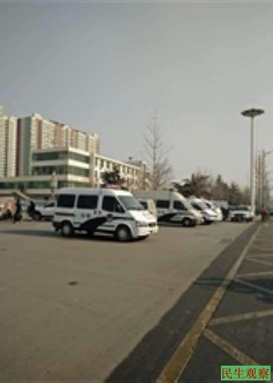 今天上午,定州市政府门前却停满了警车和特警车辆,还有一辆120急救车,只有极少数农民工逗留在市政府门前。