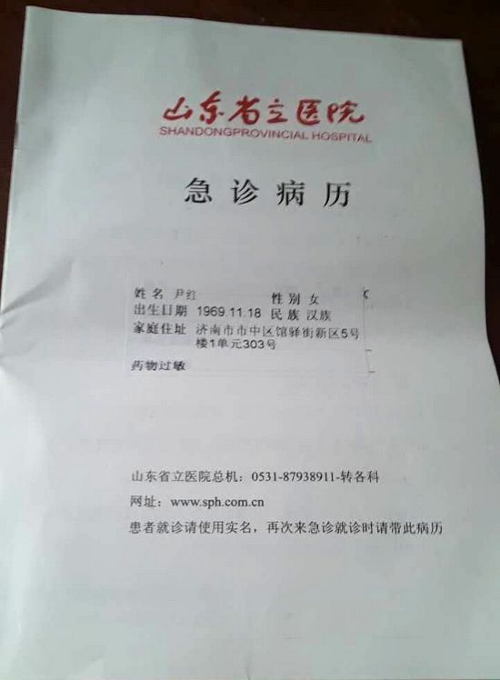 尹红说,她在拘留所一直绝食,绝食了7天,出所时人已经不行了,现在心慌恶心。口渴的厉害,已经喝很多水,现在还在山东省立医院,输的液也不少了,明天还要输液。