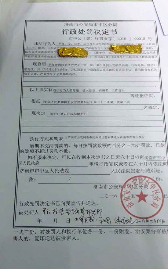 山东尹红因上访被拘留7天 上海李慧生被送拘留所