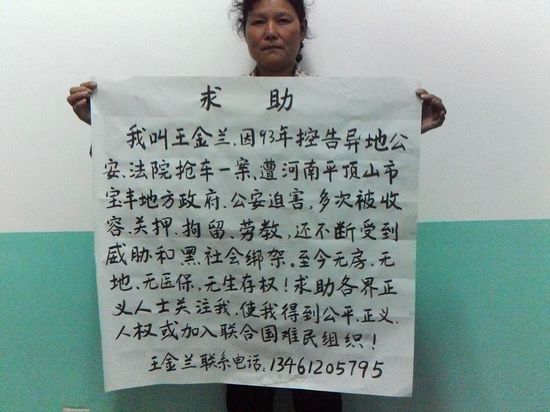 河南宝丰县访民王金兰被北京警方刑拘