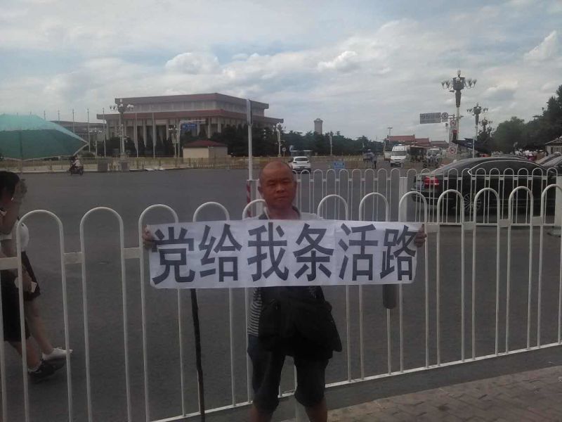 数十伤残老兵被困久敬庄 黄光生打条幅求党给条活路