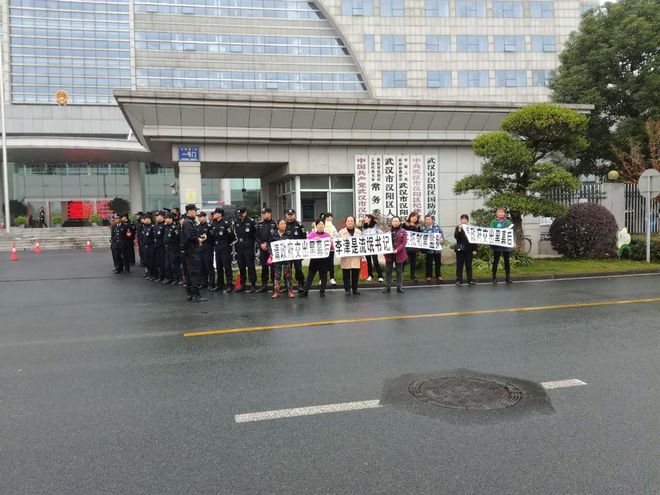 今天上午,湖北省武汉市汉阳区政府大门口发生群体抗议事件。当时现场聚集了五、六十名人员,他(她)们是武汉三镇的维权上访群众,有蔡小玲、盛爱兰、潘明华、吴挂娥、李玉琴、张想玲、沈祥春等。访民们到这里来,是抗议武汉市汉阳区当局用黑监狱非法关押魏秀芝四十多天。