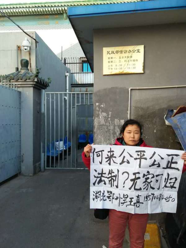 据湖北访民王申红介绍,吴玉喜是和内蒙访民杨金枝一起到中南海被警察抓住送到马家楼的,截访人员以回家解决问题为由于14日上午将其带到管辖派出所,随后失去联系,现已失联30多个小时。