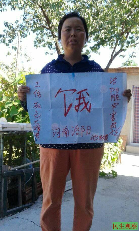河南孟津县访民池秋霞被警方劫走扣押 |