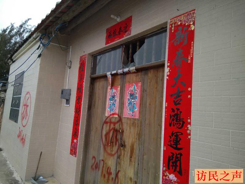 村民陈刚、杨振勇、冯文远家的门窗玻璃被联防队员用长棍,石块进行打砸破坏,还在其墙上画了“拆”字,咸田边防派出所民警接到村民报警后到现场,不做任何处理,任由这帮打砸人员完成任务后离开现场。