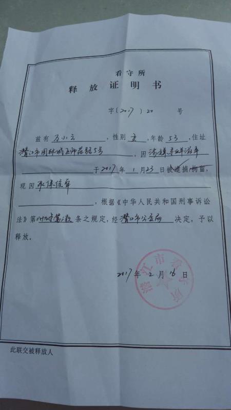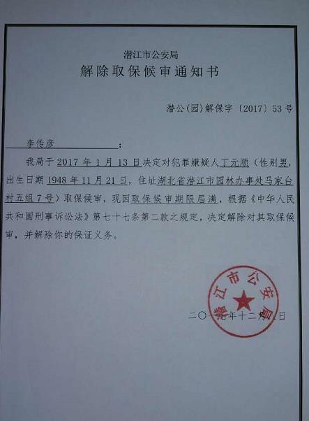 据悉,湖北潜江在2016年市级人大选举中,有大批独立参选人遭到来自当局的打压。其中比较典型的例子便是彭峰,他因独立参选于2016年12月16日,被以涉嫌“敲诈勒索罪”批捕,至今依然被关押在看守所,后来检察院以涉嫌“寻衅滋事罪”起诉到法院,但至今没有开庭。此外,独立参选的公民丁元顺,万小云都被以涉嫌“寻衅滋事罪”抓铺。丁元顺在关押30后取保候审,而万小云则被关押到2017年2月26日后取保候审。丁元顺在207年12月8日收到湖北潜江公安局《撤销案件通知书》和《解除取保候审决定书》,丁元顺的妻子当时做了担保人,也同样收到了《解除取保候审通知书》,同时也取消了“担保责任”。同样是独立参选人的万小云却在2017年12月12日收到了《移送起诉告知书》,案件已被送往潜江市人民检察院起诉。