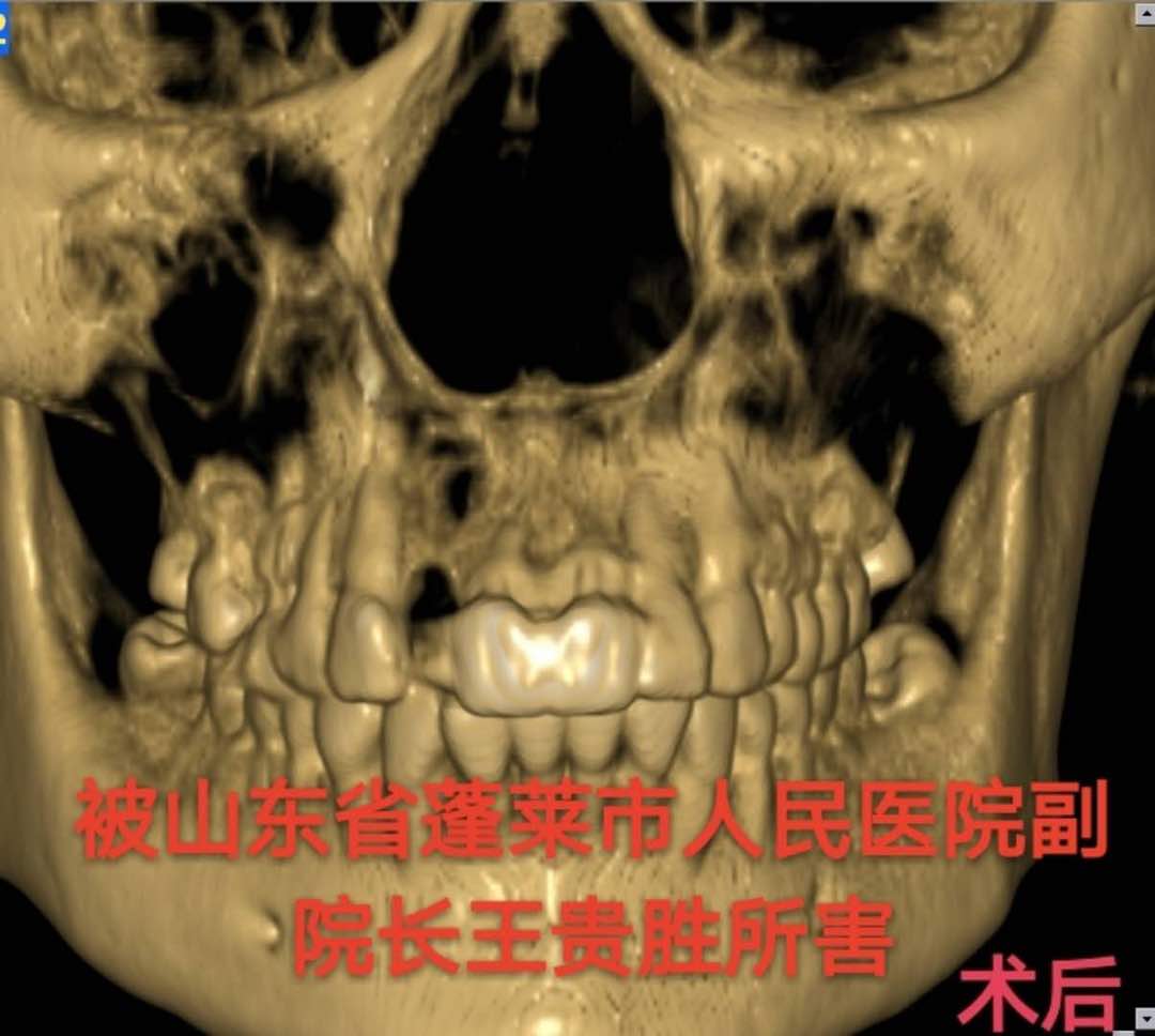 据薛景瑗向本网提供的情况说明中显示:蓬莱人民医院的眼耳鼻喉科主任宫向荣录音第五十秒中说“牙吧,我们又不会看牙,我们又不是牙医不会看牙……”然而,正是蓬莱人民医院眼耳鼻喉科不懂牙、不会看牙的眼耳鼻喉科三名“医生”(王贵胜、王翠芳、孙艳清),不知道用何等工具,硬生生地将薛景瑗上颌骨左中右加起来被砸去至少7平方厘米的骨头,牙齿被钳子掰断4颗拔掉一颗,面部神经被切坏,嘴被缝歪而致毁容。
