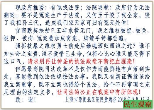 上海访民黄端芬等多人 上访遭截访失踪 |