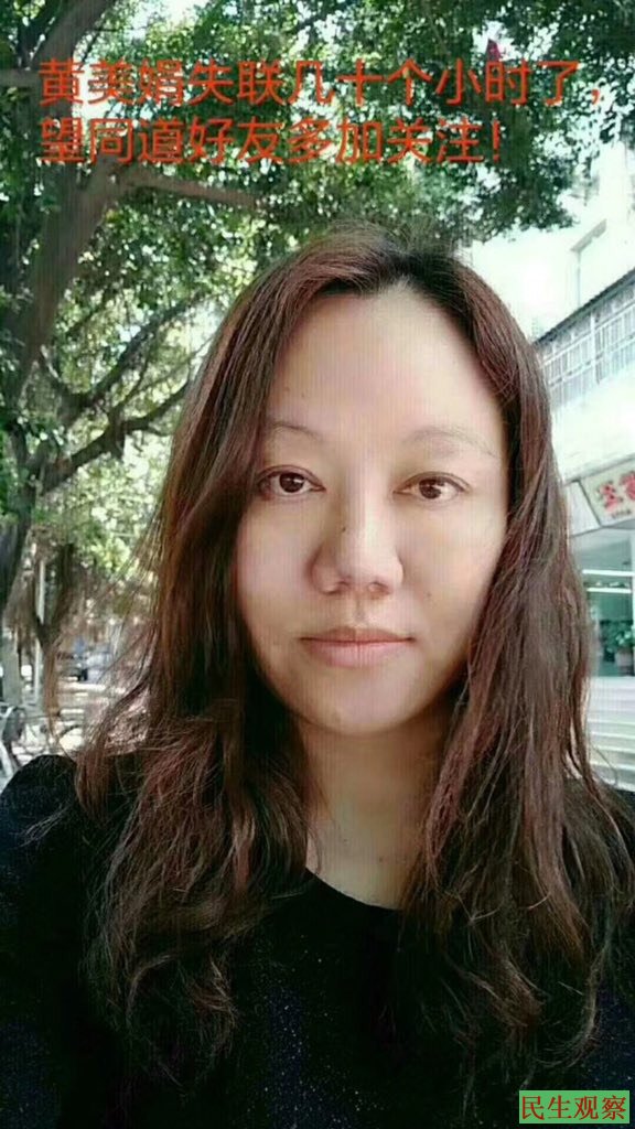 据知情人介绍,黄美娟是在4月28日被警察上门带走的,由于毫无消息,因此外界一直认为其失踪,虽预感其被抓的可能性,但一直苦于无法确认。据黄美娟的邻居讲,黄失踪前几日确有警察上门,至于何事邻居无从得知。