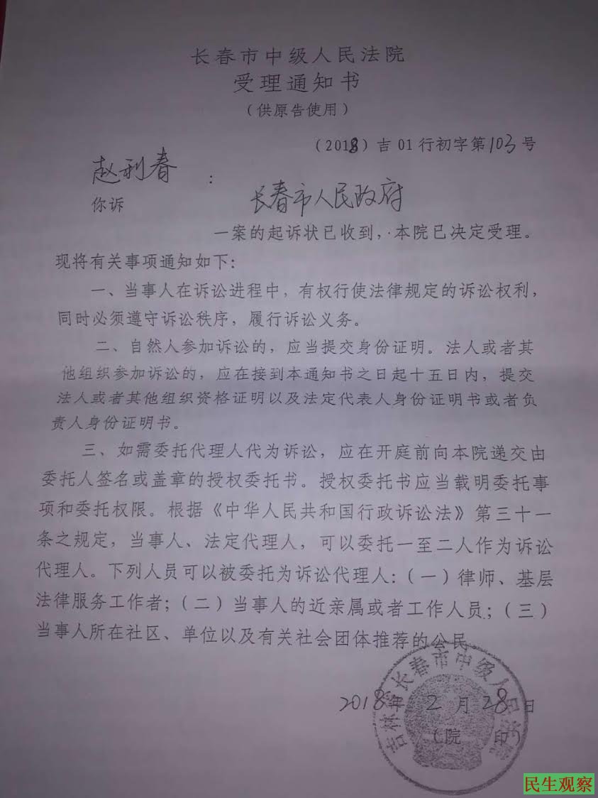 现在,长春市维稳部门一面说“我们解决不了军队的问题”,一面又不择手段的严禁她上访维权。目前,她已被控制在居住地,维稳人员既禁止她进京上访、又禁止她出门看病,她恳请媒体给予关注,望有关部门能够今早解决她的问题。