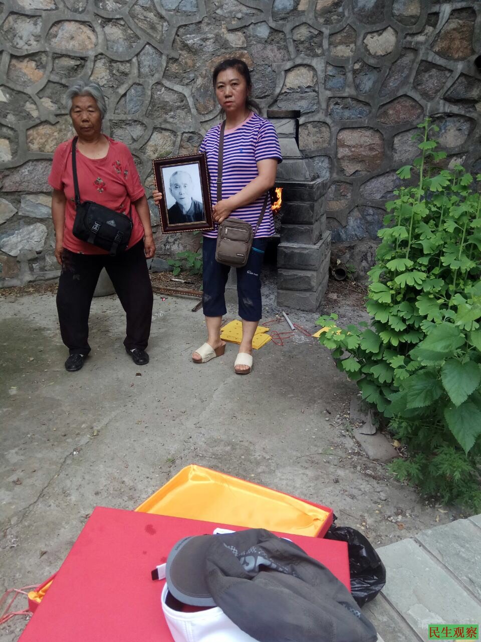 闫母在闫春英的陪同下进行了简单的拜祭仪式,警方派人进行了全程监控,并不断催促闫家母女尽快结束及离开,最后在警方的同意之下,闫母与闫春英在太平间外面手捧闫国忠老人的遗像拍了一张照片(图),然后被警方以已经拜祭完毕为由,礼貌性清场离开医院。