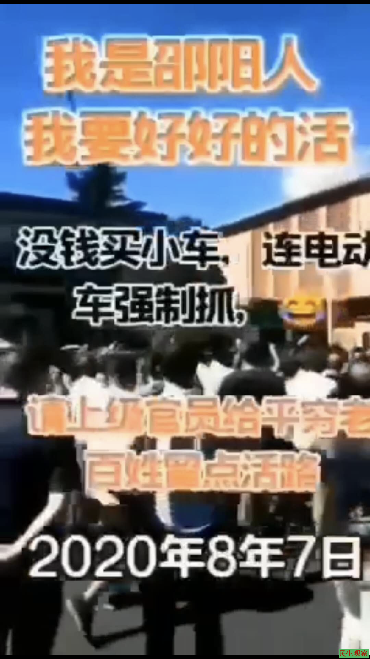 【民生观察2020年8月8日消息】本网获悉,自8月1日起,湖南邵阳市公安、交警、质监、工商等部门联合行动,对邵阳城区电动自行车生产、销售、行驶、维修等环节进行全面清理。行动第一天,官方查处“违规”电动车224起,处理电动车驾驶人320多人。至8月7日,邵阳市民被收缴、暂扣的电动车,被处罚的骑车人数以千计。8月7日中午时,忍无可忍的数千市民与邵阳市警方爆发大规模冲突,市民在街道上一呼百应,不计其数的群众开始游行到市政府、交警等部门,要求政府领导接见市民代表,取消刁难底层民众的限制措施。