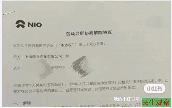 【民生观察2023年11月18日消息】2023年11月16日,一名蔚来汽车员工发文称,自己为了保住工作,为了升职,在领导的明示暗示下买了两辆蔚来汽车,又发动亲戚买了两辆,但是最终自己依然没有逃避被裁员的命运。如今不仅被裁员,还背上了每月一万多的车贷。并曝出,在公司经常加班,熬夜通宵,从来没有加班费,且车子问题很多。