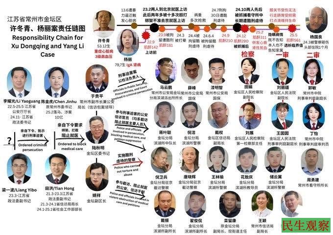 【民生观察2025年12月25日消息】江苏常州维权访民许冬青、杨国良一家,因上访揭露常州当局违法征地5000余亩、逼拆骗拆2300余户,被江苏省政法委书记李耀光下令对重病的许冬青与患肾病的小女儿杨丽进行打压迫害。目前许冬青病危被送进医院抢救,遭当局无底线干涉医疗,小女儿杨丽被残害至急需透析,仍遭常州市看守所剥夺医疗权利。