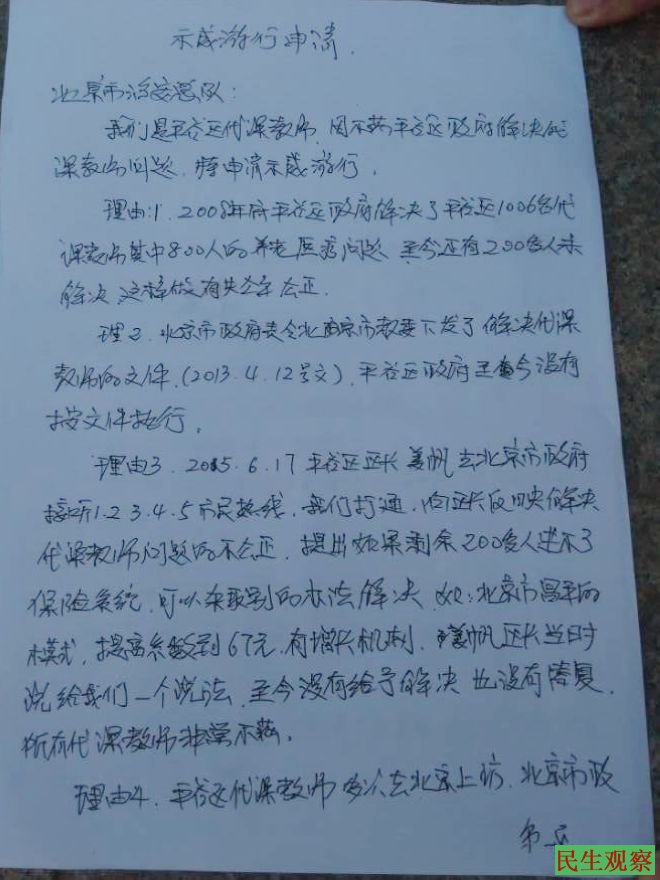 北京市平谷区代课教师申请示威游行