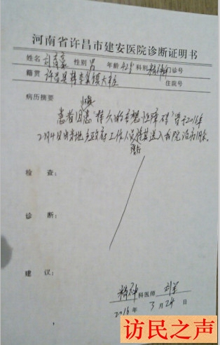 河南刘育豪因上访被五次强制送到精神病院 |