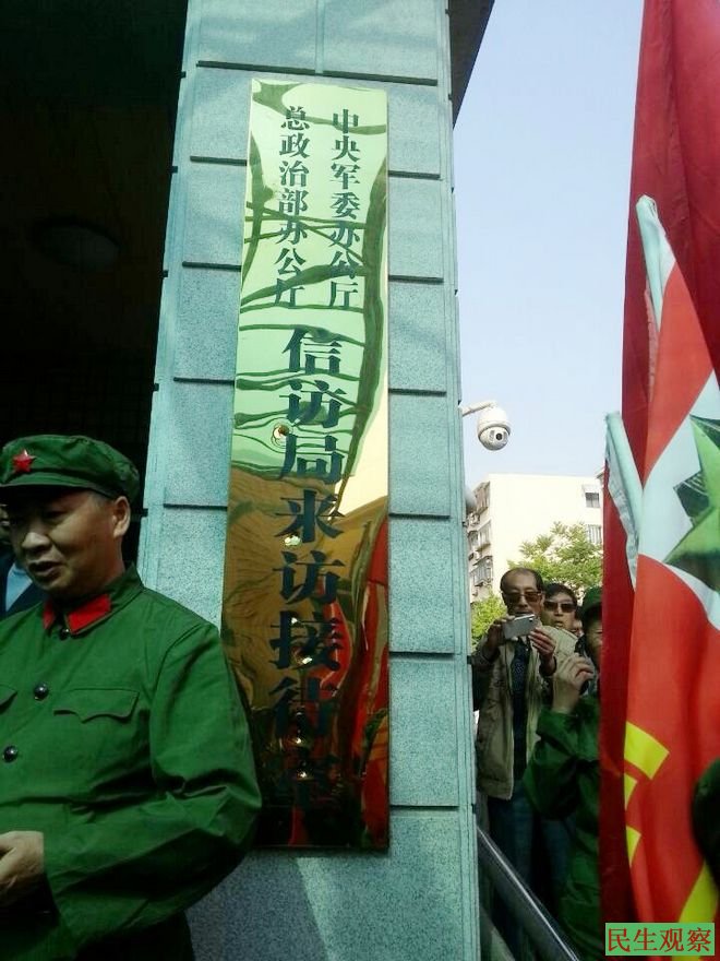 今天上午,全国各地的参战老兵成功抵达北京中央军委、总政治部信访办,据刘姓老兵告诉本工作室内说,今天聚集在中央军委、总政治部信访办的老兵达二、三千人,大家打着各省的标语、穿着军装列队在信访办前,要求与军委、总政治人员对话。