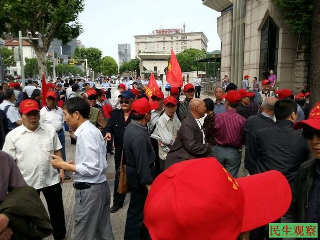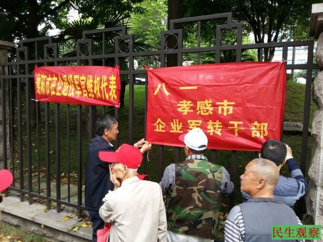 民生观察工作室2014-5-15消息:今天上午,湖北省大批企业军转干部再次来到湖北省政府上访请愿。据现场人士告诉本工作室,今天到场的企业军转干部主要来自武汉市各个区,另外宜昌、孝感、襄阳、黄石、荆门等县市也有少部分军转干部到场。据观察,湖北省政府现场人数达数百人,大家上午要求见省领导,要求落实军转政策。