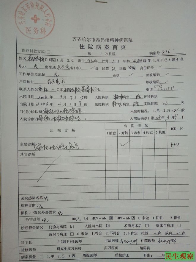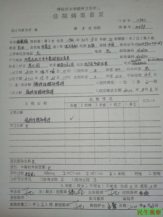 08年又考取陕西服装艺术职业学院,又因母亲被诬陷精神病,迫害囚拘呼伦贝尔市精神病院,二度失学,录取号《T080514》至今无职业。