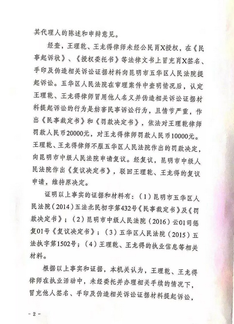 王理乾、王得龙被云南省司法厅吊销律师证 |