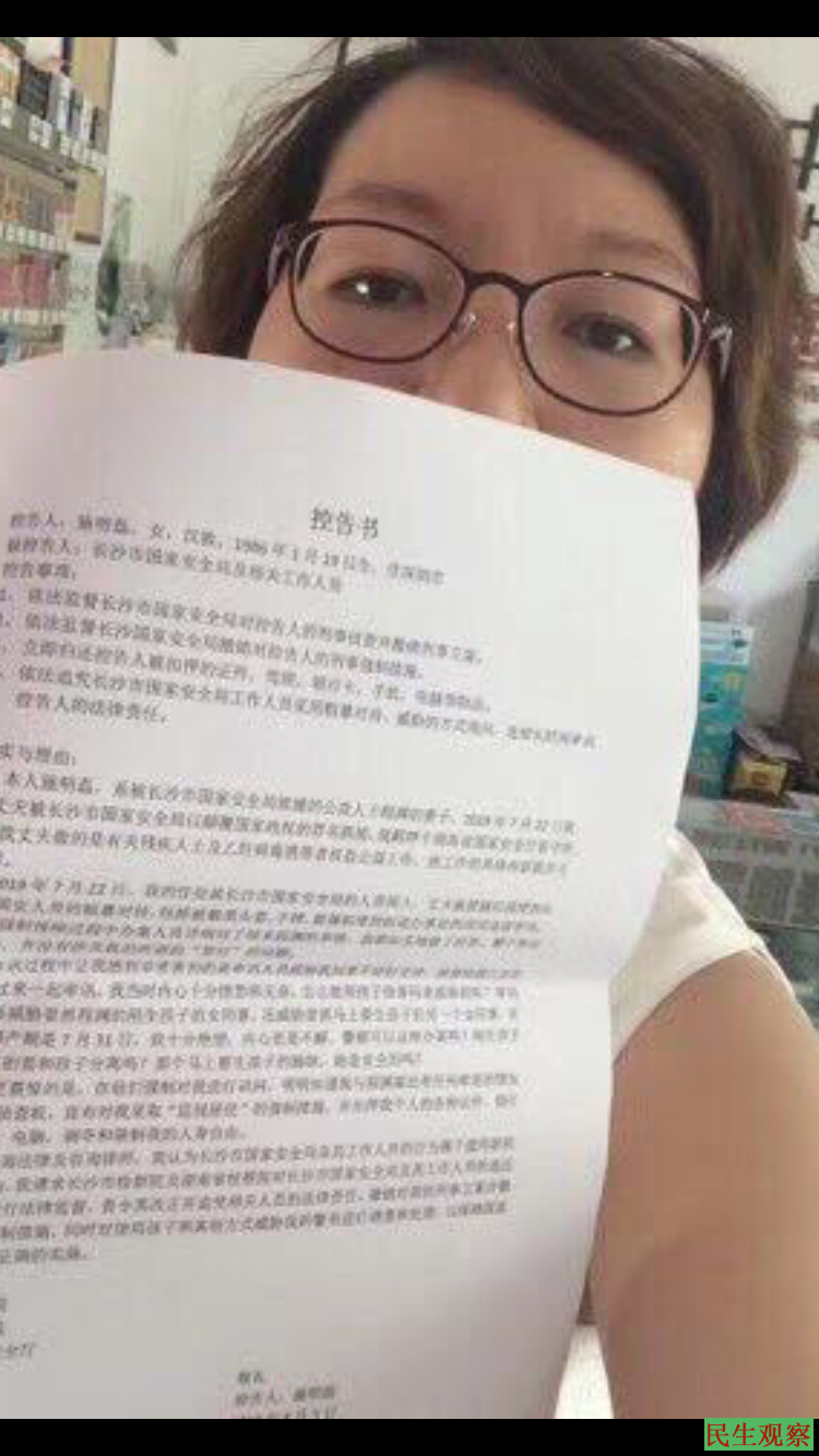 【民生观察2019年8月8日日消息】NGO“长沙富能”公益法律机构仨工作人员被捕案发生已有半个月,律师和家属至今除了知道被捕的基本信息外其他事项一概无法获知。而日前,无辜受到案件牵连的程渊妻子施明磊因不满长沙国安滥用职权的办案手法而向湖南省多个职能部门提起控诉。
