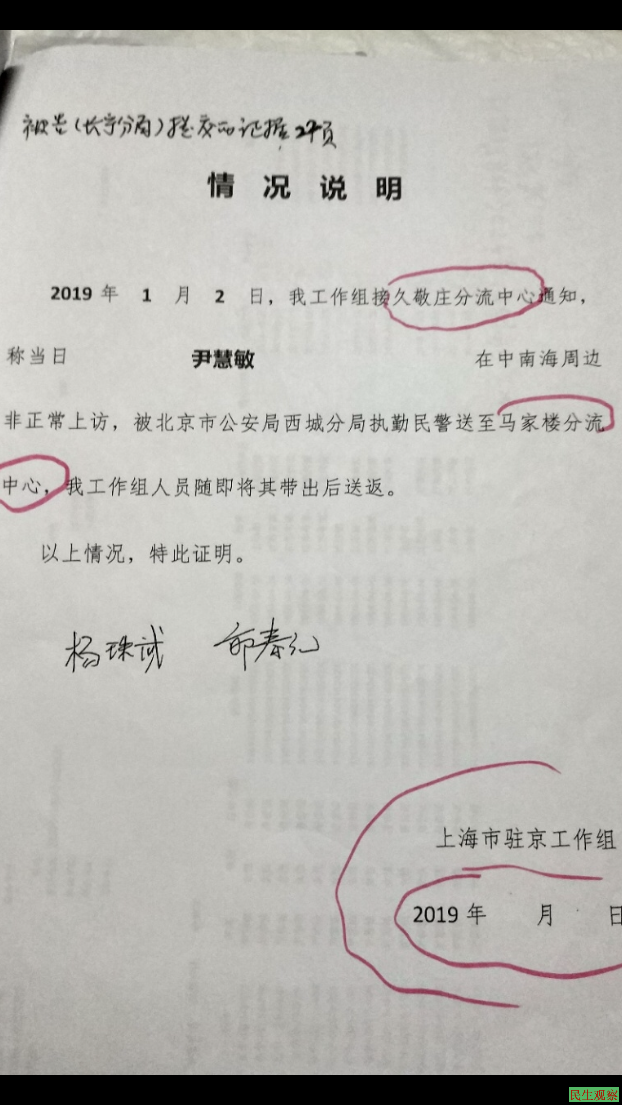 据了解,尹慧敏早年因上海市长宁区法院将其前夫的刑事重婚案转为普通离婚案,法官徇私舞弊帮助犯罪嫌疑人脱逃重婚罪和遗弃罪而上访维权。2007年,尹慧敏和前夫的一起财产权属纠纷案中,长宁区法院枉判共有住房尹慧敏唯一的女儿有居住权,将其女儿的住房份额非法剥夺,导致过错方尹慧敏的前夫(重婚罪和遗弃罪的嫌疑人)既逃脱法律制裁又多得益。法官张振东在庭审中帮助尹的前夫逃脱重婚罪和庭审中非法转移夫妻共同财产。执行法官董幼华和俞鸣琪,执行案抚养费久拖不执行,造成尹慧敏母女严重的生活困难,还找借口将尹慧敏送进了长宁区拘留所关押,导致尹的父母严重的精神分裂症住院。上海三级法院(徐汇区法院、上海市一中院、上海高院)医疗损害纠纷案枉判枉法裁判;行政案一审上海市长宁区法院和二审上海第二中级法院枉法裁判后申诉到上海高院久无音讯,刑事上诉案未庭审宣判,既无传票也不送达判决书。