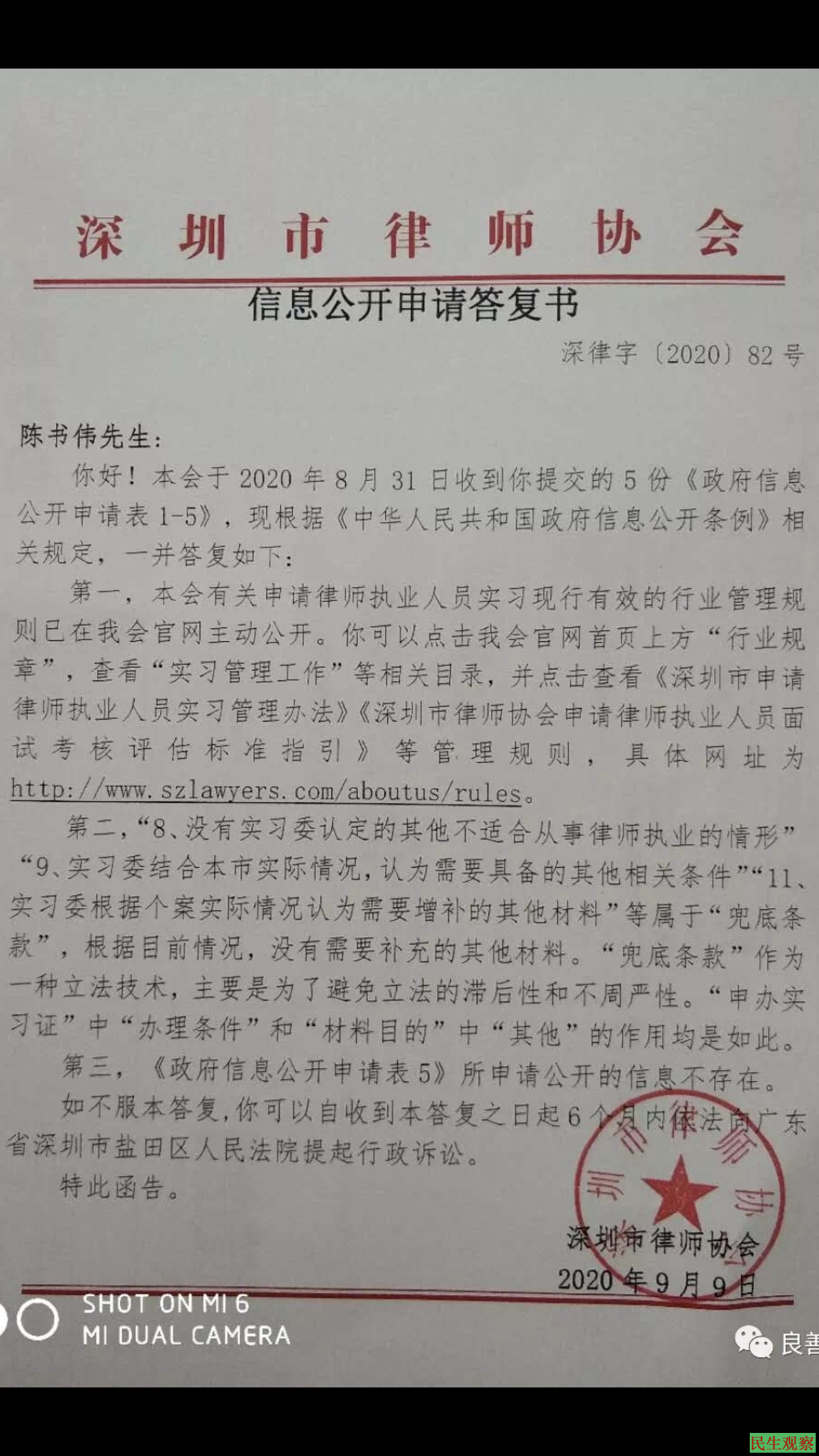 【民生观察2020年9月19日消息】深圳律协把陈书伟列入黑名单,即只要陈书伟申请律师实习,相关责任人同时收到提示,24小时内必会动用相关力量,采用软暴力方式劝阻律师事务所解聘陈书伟,迫害陈书伟无法参加律师实习,又让陈书伟无法对深圳司-法部门的迫害提出行政复议。