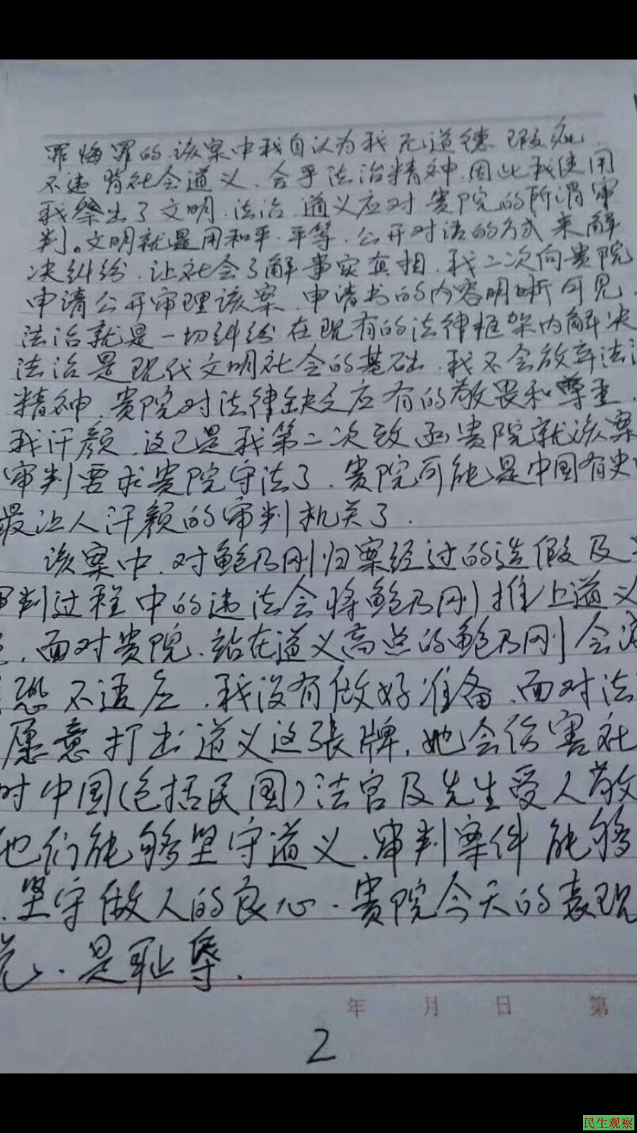 【民生观察2021年3月9日消息】卢京美律师于3月5日发布消息称,2021年3月5日上午9时许,我来到京山看守所会见鲍乃刚。会见中与鲍乃刚首先表达了对京山法院作出一审判决书的严重不服,并在法院送达文书时明确表示上诉。上诉期间鲍乃刚亲笔手写36页上诉状详尽阐述了一审法院程序上违法和实体上认定其行为构成寻衅滋事罪的错误之处并交由派出所转交一审法院。本人于2021年2月8日为鲍乃刚撰写了一份上诉状并于当日由京山看守所转交鲍乃刚签字后邮寄给荆门市中级法院。