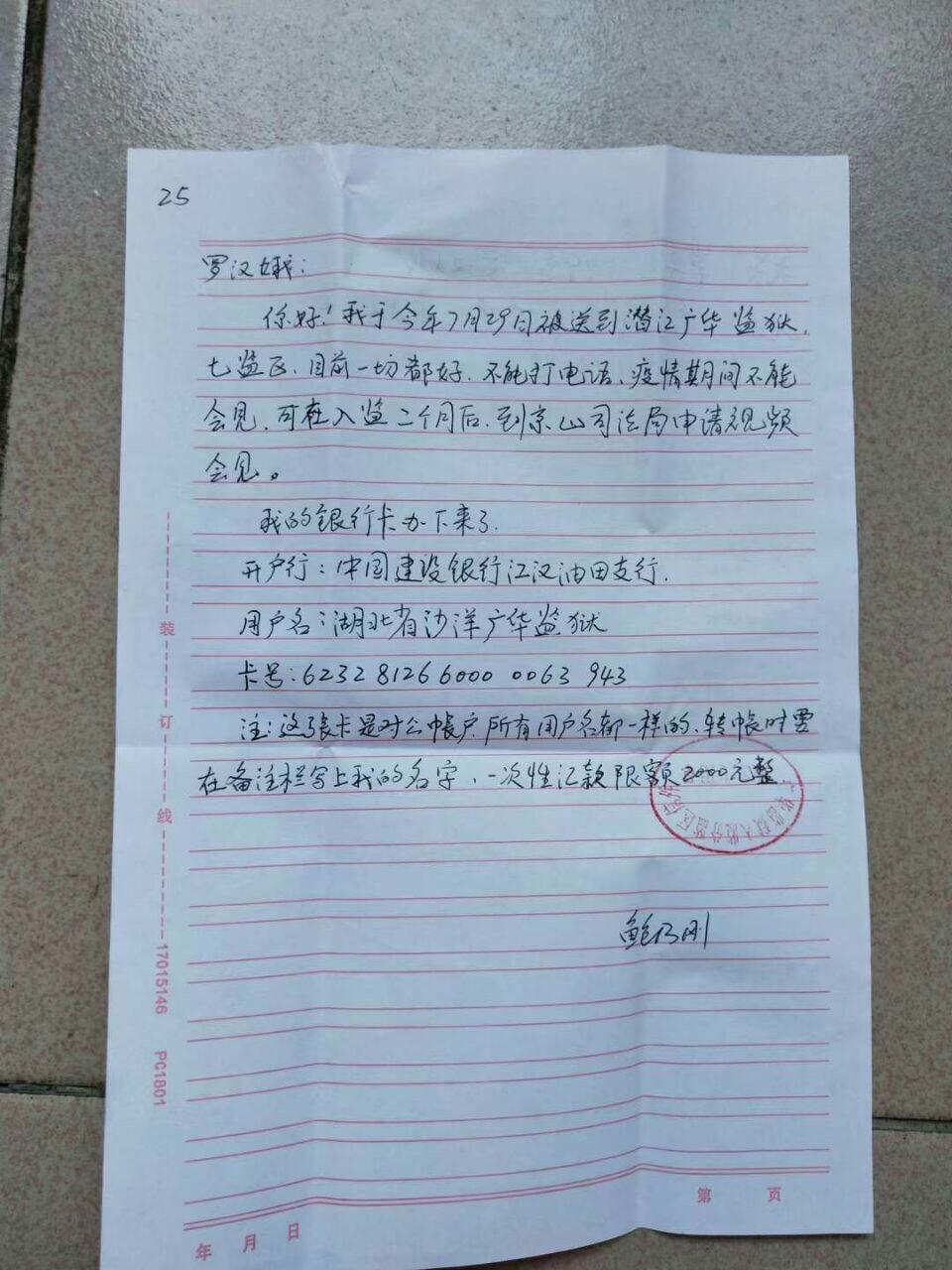 最后鲍乃刚老婆罗汉娥及家人强烈要求湖北沙洋长林监狱快速安排家人会见,任何监狱不得剥夺拘押人员的会见权。