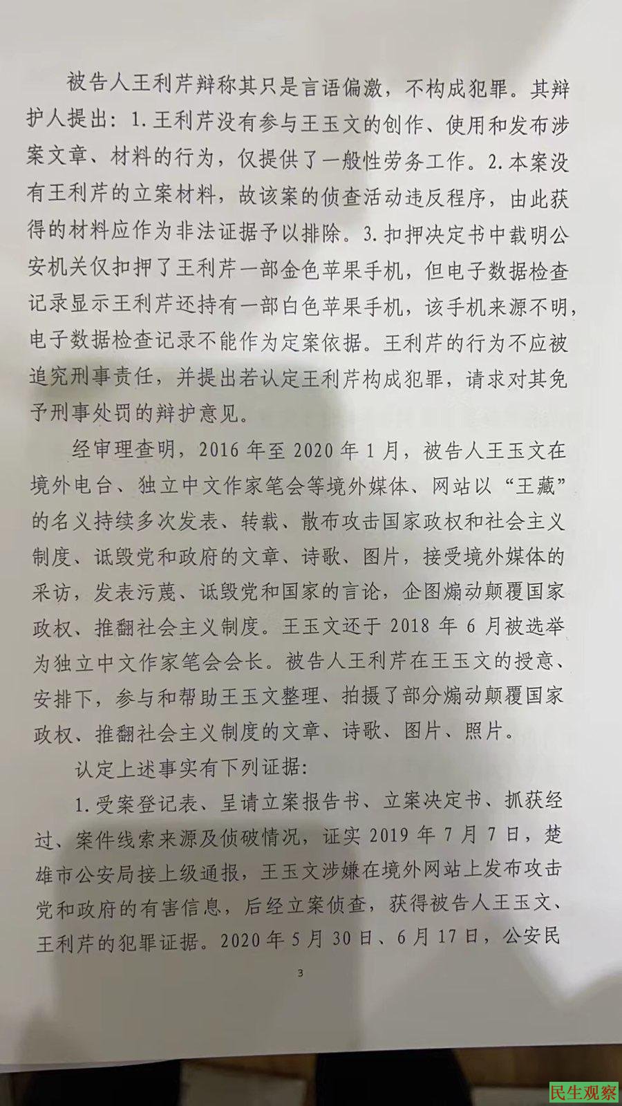 王玉文、王利芹煽动颠覆国家政权罪一案于2020年12月15日提起公诉。于2021年12月15日不公开开庭审理。