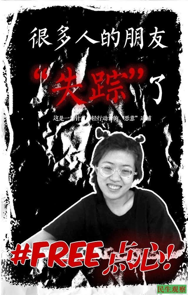 【民生观察2022年12月12日消息】2022年12月5日,公益青年杨紫荆(点心)因在广州海珠广场反对过度防疫政策,被广州市公安局越秀区分局,以涉嫌寻衅滋事罪刑事拘留。目前人还在北京路派出所。办案人员不允许律师会见、存钱存物并拒绝告知任何案件信息。