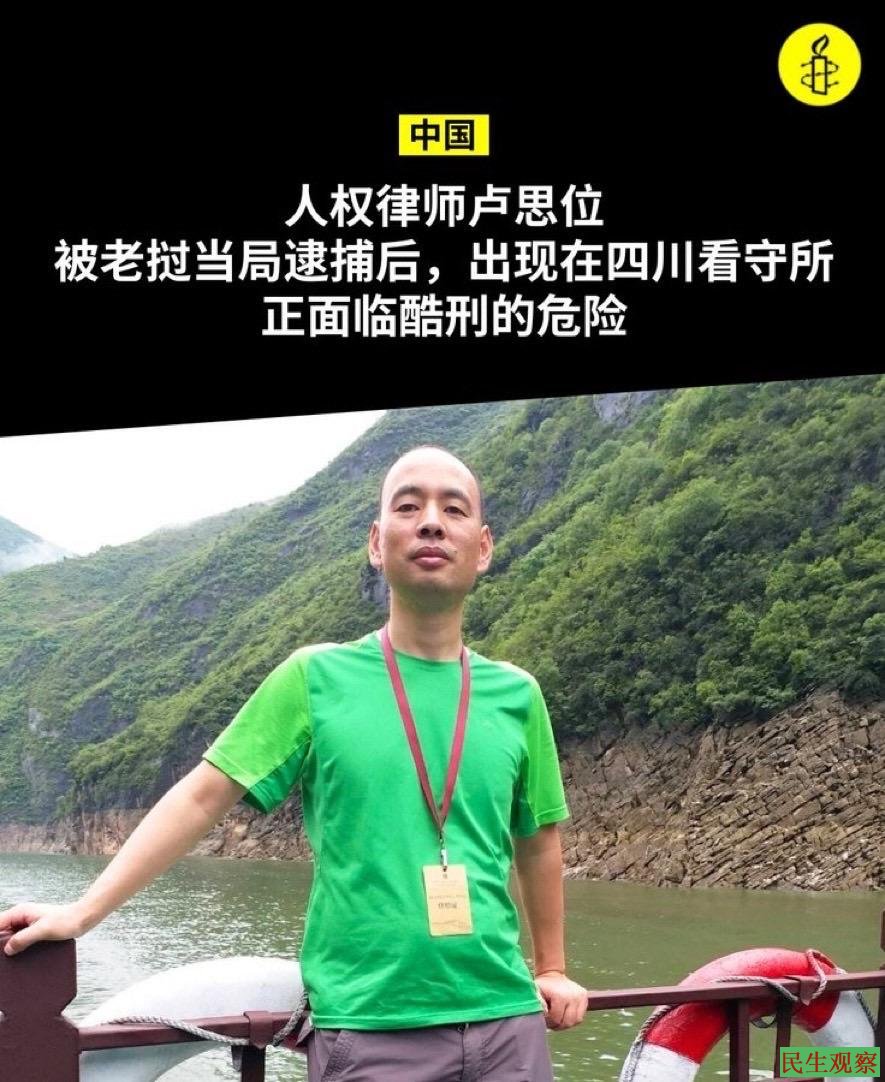 国际特赦组织中文呼吁,中国人权律师卢思位被老挝当局逮捕后,出现在四川看守所,正面临酷刑的危险。