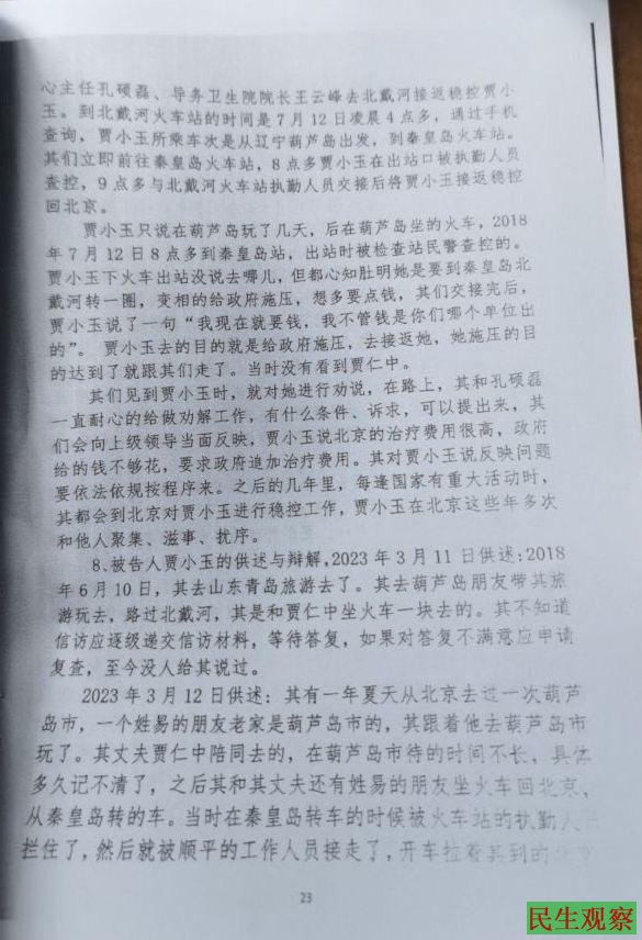 去年春节期间年前年后一个多月,孩子妈妈贾小玉去了几次国家信访局,2023年2.1号出来被暴力接访回去,2.2行政拘留,2.17期满没出来,续上去年欠了7天拘留期,2.24号期满又开出一个行政拘留,3.11号提到办案中心,提审48小时,开出3.12号刑事拘留,3.25号批捕,10.20号开庭,11.27号判决书下来4年。