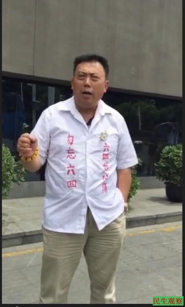 2017年6月4日,因在南京大屠杀纪念馆门前身穿“勿忘六四”血衣,发表“六四”纪念28周年演讲,并将演讲视频上传发布到网上,于当日下午遭南京市雨花台区警方传唤调查,6月5日即被以涉嫌“寻衅滋事罪”刑拘;2017年7月6日,被转正式逮捕;