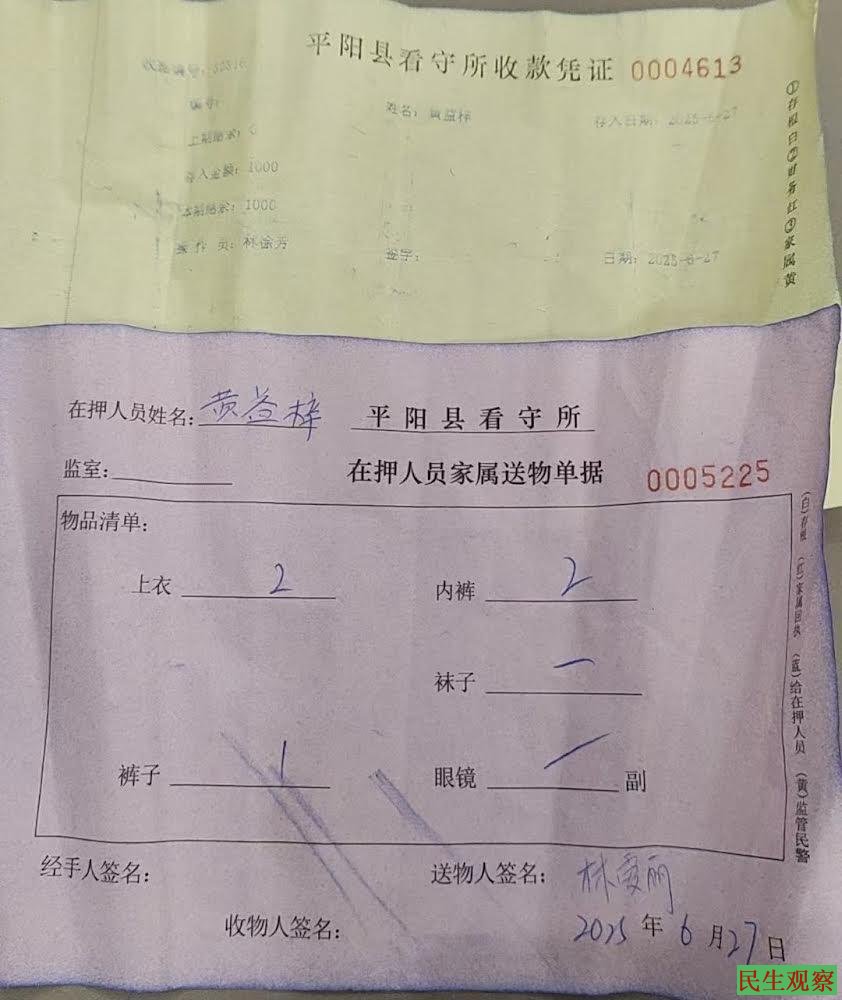 【民生观察2025年6月29日消息】近日,浙江温州平阳的黄益梓牧师和另外四位弟兄姊妹一同被抓,已确定被平阳警方刑事拘留,律师已会见到黄益梓牧师,其目前被羁押在平阳县看守所。2014年黄牧师因为反对温州当局强拆十字架亦被羁押于此,当时律师付出巨大努力才会见得上。
