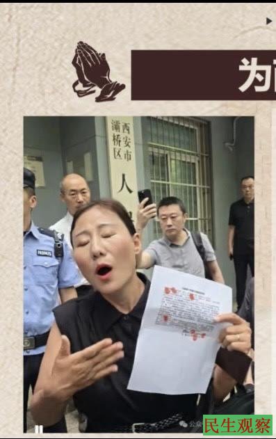 【民生观察2025年7月12日消息】近日,西安丰盛教会廉长年牧师、廉旭亮牧师、付娟传道三人,被控涉嫌诈骗罪一案,在西安灞桥区法院开庭审理。当日法院违法解除辩护人,不让律师进入。法院门口大量不明身份人员推搡律师,不让拍摄,甚至欲抢律师手机。律师报警,警察来后不核实不明人员身份,反要带走报警人。不明身份人员还当着警察的面大声呵斥报警人老实点,并继续上前推搡,警察不对其进行调查。