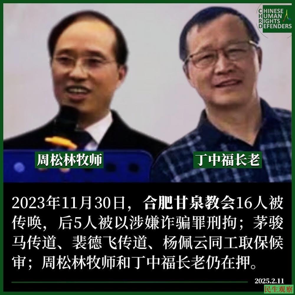 【民生观察2025年7月14日消息】安徽合肥甘泉教会周松林牧师、丁中福长老被控涉嫌“诈骗罪”一案,将于2025年7月16-18日再次开庭审理。